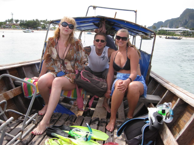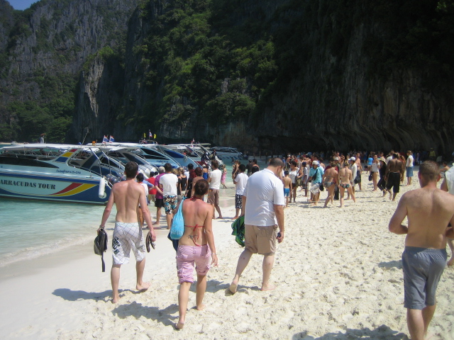 Перелетев на острова «Пхи-пхи», мы сняли первые попавшиеся бунгало, главными критериями был кондиционер и гор. вода, хотя можно было просто купить гамак и повесить между деревьями. Вода была чистейше прозрачно-зеленая, а рыбу можно было ловить пакетом. В один из дней, арендовав катер, мы прокатились до острова, где снимался «Пляж» с ДиКаприо, и увидели полчища народа, такие что пляж представлял из себя Бродвей в час пик.