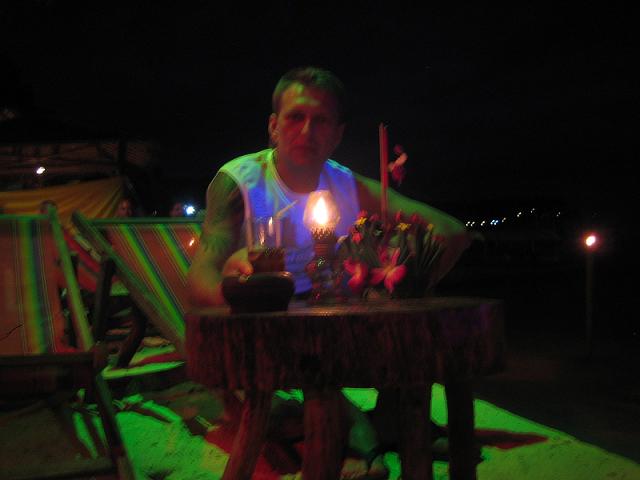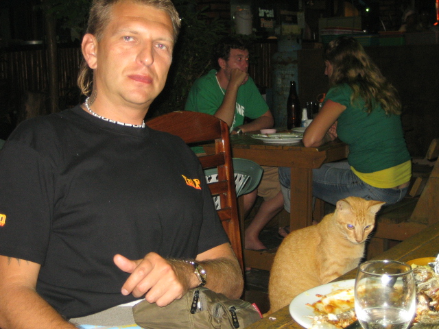 В один из дней совершил поход на пароме на Пхукет, осмотрел несколько монастырей и ночную жизнь в виде хард-рокового бара, огромных устриц и несмолкающей всю ночь центральной улицы. Кстати, во всем Таиланде ни разу не слышал попсы, только хард-джаз и блюз, а на островах под звездным небом после пол-бутылки текилы казалось, что воскреснет Марли.. А улететь мы успели за два дня до блокирования аэропорта оппозицией. В общем. Пазитиффф………….. |