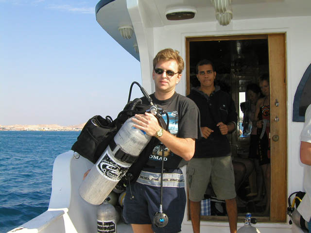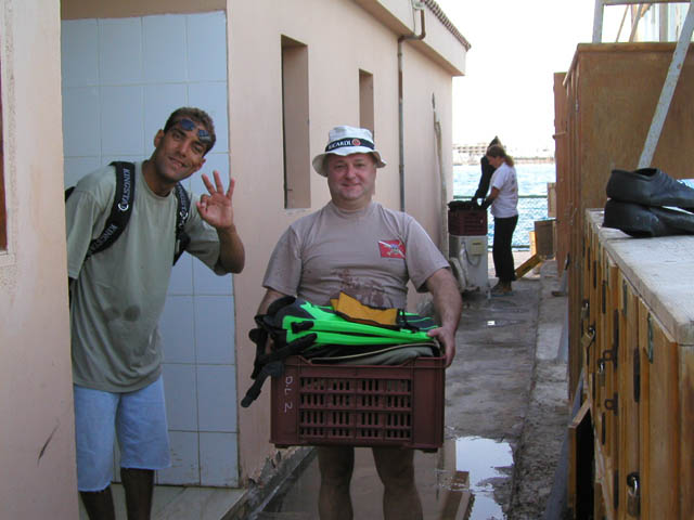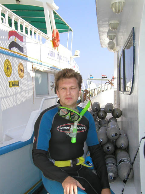 Путешествие в Африку к рыбкам и ракушкам началось с погрузки в Шереметьево на самолет под вопли моего приятеля Саши: И почему мы девчонок не взяли? Как теперь целую неделю?)))) «Саша, мы вроде нырять едем! не до этого!»-отвечал я.. «Какое, не до этого? На судах все со своими приятелями будут! Не подъедешь!» «Почему это? Есть технодайверы с затяжными погружениями, они под водой будут долго , можно успеть!))))»-успокаивал его я… Правда во время перелета он прошелся по салону, придирчиво всех осмотрел и мы стали квасить…. Отель Интерконтиненталь был вполне «на уровне», в номерах нас ждали вазы с фруктами, на территории 5 ресторанов, барчиков и всего прочего))) На следующий день мы бодрым полу-галопом понеслись в сторону дайвинг-центра, погрузились на моторную яхту в количестве 10 дайверов + команда и отошли в сторону первых рифов)) Вода была теплая, море ласковое, куча рыбок шныряло туда-сюда, спруты и мурены, завидев безумную гребущую толпу, тут же прятались)))) Ракушки, рыбки и кораллы были все пронумерованы, с бирками со штрих-кодами и брать с собой ножи и перчатки запрещалось (что бы не ломать кораллы))) Но , в принципе, все было достаточно красиво. На следующий день было запланировано погружение на 35 м к затонувшему тральщику времен Египетских конфликтов))) Ржавое корыто лежало на боку с огромной дыркой от торпеды в борту. Навстречу нам плыла другая группа, сверху спускалась третья, короче, количество дайверов, кишащих вокруг корабля, превосходило, наверное, команду этого тральщика ))). После второго (последнего за этот день) погружения Саша достал виски с колой и все это употребил, рассказывая, что кажись он видел маленькую акулу)) Я на это ответил, что скорее всего это была мороженая стерлядь, которая упала с камбуза проходящего мимо лайнера и даже была обложена оливками и зеленью))))). Технодайверы, которые ныряют на большие глубины на смесях, обвешанные 5-ю баллонами и кучей вентилей, с гордостью заявили, что у них одних шлангов 15 метров))) Мы посмеялись над ними, а вечером завалились в популярную дискотеку «Папа-Бич», где под утро местные секьюрити начали делать нам замечания за аморальное поведение))) (оказывается, они еще блюдут за нравственностью, особенно в Рамадан, который начался))))) Оставшиеся дни были проведены на разных рифах, особенно недурственно выглядел коралловый сад (несколько кв. км. сплошных зарослей), в которых плаваешь, как в лесу)))) Саша к этому времени окончательно выдрессировал аборигенов, ругаясь пополам английским и русским матом, так что они уже выделяли проводника на каждых 4 –х дайверов))) Последний день был отдан отдыху и местным достопримечательностям..)) По общему согласию на январь запланирована Куба))) |