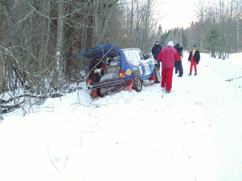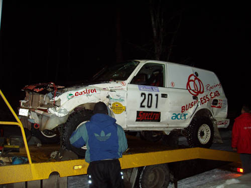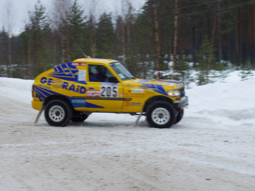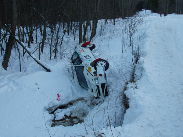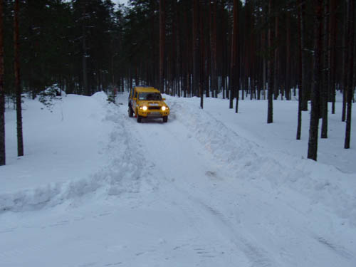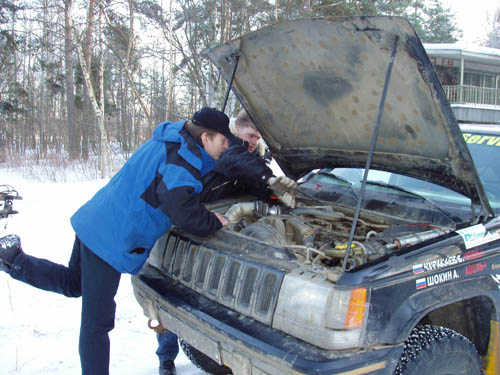 "Северный Лес"-20041-ый этап Чемпионата России "Северный Лес"Любая дорога из Москвы на север в сторону Питера, как правило, отягощена 2-мя проблемами. Это "Как доехать с прицепом, груженым боевым джипом, и ничего не поломать" и " где останавливаться пожрать")) Если с первым справляешься нормально, с помощью кувалды, шиномонтажа и "какой-то матери", то 2-я-это целое искусство)). Причем, все жратвенные точки, бывшие в предыдущую поездку напрочь забываются. Дорога до Приозерска (граница Ленинградской области и Карелии) заняла часов 15. Ввалившись в пансионат в 4 утра и, ко всеобщей радости, обнаружив горячую воду, мы выпили горячительного и завалились спать.)) Следующий день прошел в административных и технических проверках и осмотре местных красот, выразившихся в бурлящей и незамерзающей даже при -20 С реке))) Местные заведения, как и везде в провинциях, кормили очень вкусной и дешевой едой)). Вечером заказали большую сауну, а соседняя дружественная команда наткнулась неподалеку на общежитие агро-пром техникума.))) Уже сидя в сауне мы с живейшим интересом смотрели на одного из гонщиков, который под окнами на морозе , закутавшись в два тулупа с "циклопом" (фонариком) на голове , ставил на машину фирменную систему пожаротушения, без которой его не хотели допускать))) Выйдя в одних простынях из сауны, мы предложили ему холодного пива!))))))) Но он на провокацию не поддался и продолжил ковыряться))) Трасса была достаточно щадящая, где кроме классических рейдовских лесных колдобин, присутствовали длинные заснеженные грейдеры, что даже легковой Лансер-Эволюшен решил прокатиться с нами вне зачета))) ГАИ-шники, стоявшие в одном из крутых, почти 180 градусных поворотов, ради интереса меряли скорость вхождения))). Основная масса джипов "вваливалась" от 110-до 140 км/ч, Лансер вошел с воем на 160, народ был в восторге))) Правда потом он прыгнул и не попал на узенький мостик через речку))). Собравши останки Лансера, обнаружили на защите поддона надпись "Порвем внедорожников ,как тузик грелку!", долго потом все смеялись))) Утром следующего дня я обнаружил штурмана соседней команды, который с перекошенной рожей рассматривал носочек детского размера с клубничкой и вишенкой, забытый студенткой агро-пром техникума, и вопрошал: Будут ли его теперь все считать педофилом?))))))) Я отвечал, что в техникум берут с 14 лет, так что "возраст согласия" он проскочил)))) В это день предстояло пройти в гоночном режиме больше 300 км. Несколько раз проходили через местные деревни! В одной мы погнались за лошадью)) Вы видели когда-нибудь, как лошадь входит в поворот?)) Мы по своей детской наивности думали, что полноприводные транспортные средства не кренятся)))) Ни фига))) удирая от нас, лошадь на 60 км в час рванула в сторону, как заправский мотоциклист, и с креном градусов в 30, ускакала в сторону!))))))) Через 50 км , мы лишились переднего привода, по причине откручивания какого-то болта, который раздолбал всю начинку моста)) и поехали "вихляя задом" в каждом повороте)) Через 100км доехали до тех.парка, где механик начал разбирать мост)) Поняв, что получили очередной "сход", мы расстроенные начали употреблять "Синопскую", и не заметили, как офигачили 0,7)) Через два часа механик постучал в окошко Субурбана и сказал что вытряхул всю начинку и на заднем приводе можно ехать!))) Спортивная честь, подогреваемая "Синопской", дала о себе 