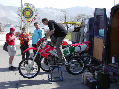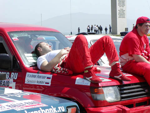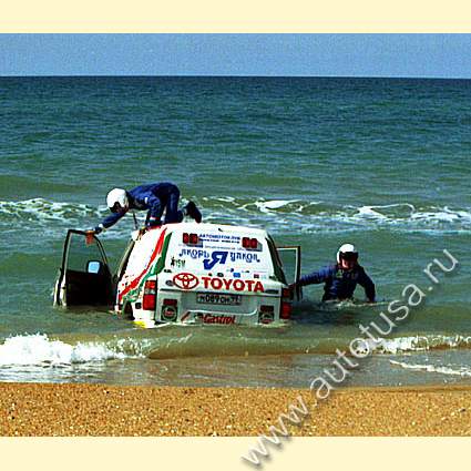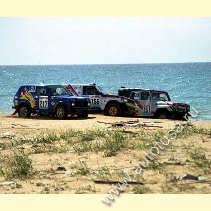 Баха-Новороссийск-20022-ой этап Чемпионата России по ралли-рейдам «Баха-Новороссийск-2002»Проходило сие мероприятие с 23 по 27 апреля. Прилетели с моими коллегами по цеху пилотами «Автокея» 22-го утром)) Механики и технички, подобно вьючим мулам, выдвинулись еще в субботу и нас уже встречали в аэропорте с криками: «Мама, ням, ням!J))(деньги кончились))). Гостиница Новороссийск почти всех кинула: прибыла большая комиссия с целью проверки казнокрадства отцов города и ее заселили туда))) Мои оголтелые механики, тем не менее, подсуетились и оторвали мне люкс, сами заселившись в близ лежащем «Океане» без горячей воды))))) Пройдя регистрацию, у нас оставался целый вечер ( к тому же на следующий день будет короткий «пролог» с торжественной частью), поэтому мы решили посетить местные заведения))). Прогулявшись по набережной и оценив «местные формы», мы отправились в стрип-бар «Паук». Надо сказать, заведеньеце вполне приличное, кухня хорошая, интерьер, и девочки, прежде чем залезть к тебе на стол, спрашивают разрешения!J)))) Но формы, господа, формы! Сказывается юг конечно!))) Одна только была очень хорошенькая, и оказалась из Краснодара)))Да, и кордебалет недурственен))) Посидев до 3-х ночи, и договорившись с официанткой и певицей ресторана сходить завтра в кино, мы отчалили в гостиницу, заклеймив печатью позора за «неспортивное поведение» одного из штурманов, который решил отдаться за деньгиJ)))) О чем это я? Ах, да про ралли!)) «пролог» (она же квалификация) проходила традиционно по Малой Земле в куче гальки и песка под вопли собравшегося города… Очень было удачно, никого не задавило, хотя народ ломился прямо на трассу, не подозревая, что если двух-тонный джип уйдет в снос, то человек десять ухайдокает точно))) Но как говорила Юта Кляйншмидт (кажись): ехать надо прямо в толпу, значит там трасса, а они сами расступятся))))). Проехали нормально, правда не заметили трамплинчик перед лужей, летели метров 10 по воздуху, плюхнувшись в болото на 4 колеса, окатив восторженных репортеров, и понеслись дальше (подвеска уцелела)))) Следующий день была «Суджукская коса»--300 км по песчаным барханам и кромке моря. В песок зарывалась практически любая резина от «Даккара» до «Мишлена». И через 10 км, у первого КП, мы увидели дымящийся Эволюшн одного из Автокеевцев, движок не выдержал.. Дальше несясь по кромке моря мы увидели первого утопенника: машина по руль в воде пыталась уплыть в Турцию ( попала одной стороной в волну и унесло))). Обогнав несколько машин мы стали выбираться в обратном направлении, и доехали до большого затора: машин 6-7, переехав вброд лиман, пытались штурмовать отвесную песчаную гору, но безрезультатно. Порадовал только желтый монстр «Сапсана», купленный где-то в Англии, он просто ее перепрыгнул с разгона))) Решив поискать другой брод ( т.к все было забито другими машинами), мы двинулись по воде вдоль отвесной стенки и впереди увидели второго Автокеевца, затонувшего почти по крышу! «Назад»!! заорал в шлеме истошный голос штурмана, но было поздно, мы начали погружение)))) фарватер был выбран с ошибкой!)) Быстро отстегнувшись и выбравшись на крышу, я успел захватить сумку со всякой снедью и с ужасом увидел, что моя куртка, которая должна быть в сетке под потолком уже плавает, а там вся электроника в виде спутниковых и моб телефонов, фотик, запис книжка и.т.д.. Самоотверженно я бросилс