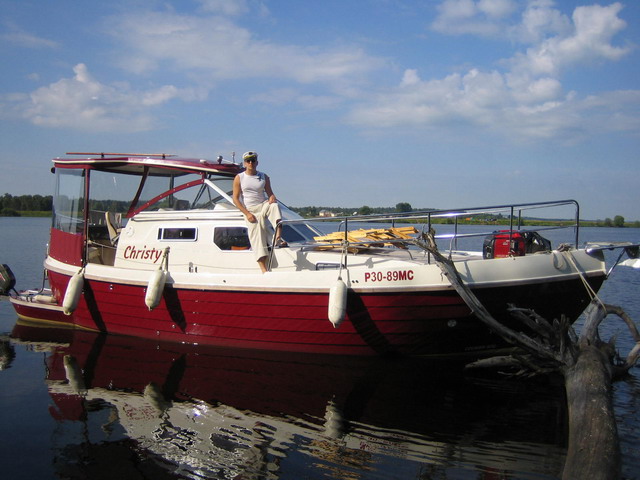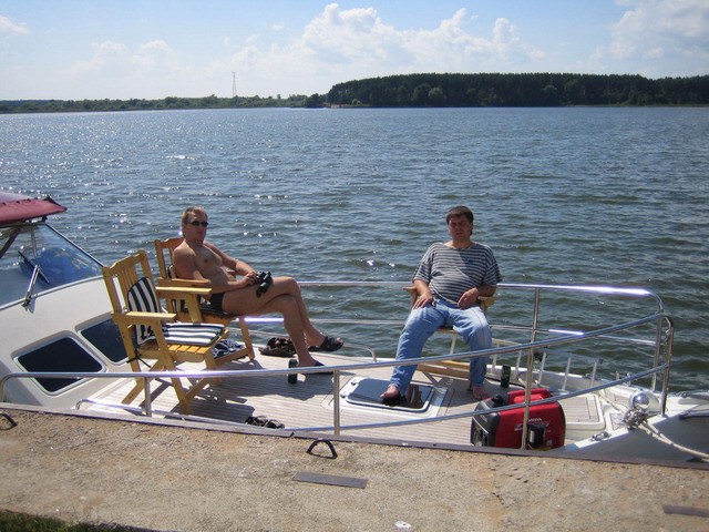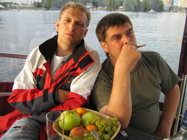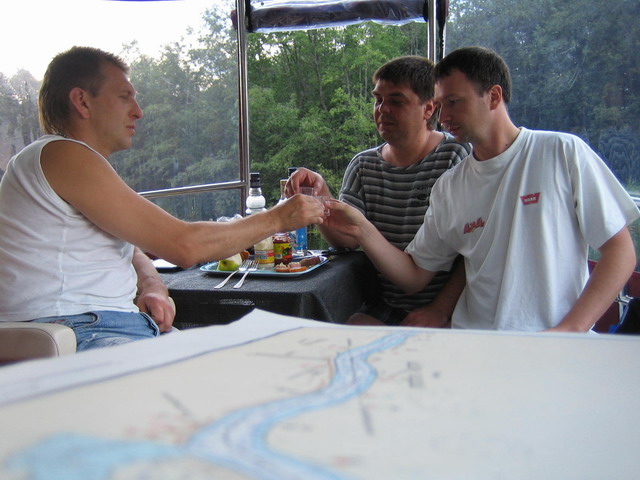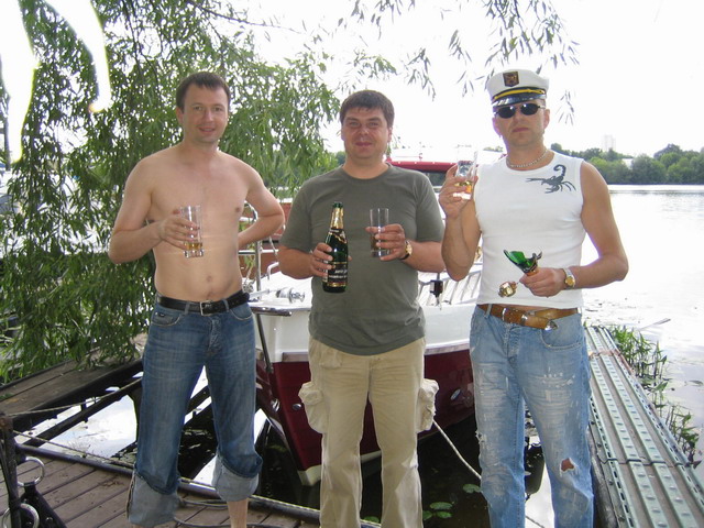 Свежекупленная яхта была готова буквально за два дня до планируемого отхода. Я и два моих приятеля по традиционным путешествиям успели накупить провизии и прочих излишеств. Разбили бутылку шампанского о форштевень, нарекли посудину “Christy” и в субботу после обеда отправились в путешествие. Правда первую ночь провели в Строгинском заливе, ибо в шлюзы из-за отсутствия больших барж нас не пустили, чтобы «зря воду не гонять»)) но мы нисколько не пожалели, т.к. ввечеру тут же приехали друзья, с коими мы и начали употребление горячительного))) В этот раз мы решили пуститься в неизведанные края вверх по течению в строну Твери. Надо сказать, что старый мариман Леонид, который не смог пойти, всегда противился той стороны, как будто там был район «бермудского треугольника»)) Причины так и остались невыясненными, и мы нисколько не пожалели.