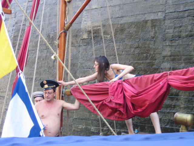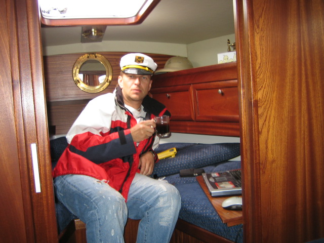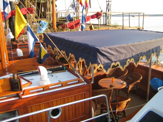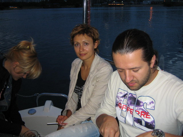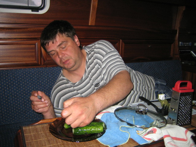 Продвигаясь вверх в сторону Твери, когда уже шел 3-ий день путешествия, юнга, страдающий спермотоксикозом, все чаще и чаще хватал бинокль и пристально осматривал берега в поисках «материала»)))). В Твери мы пришвартовались в маленьком яхт-клубе, где местный «Морской волк» лет 55 с седым «хвостом», собранным сзади в пучок, тут же на лоции нарисовал нам все хорошие места для стоянок и ночевок)) Вечерело, и мы пристали к кафешке на дебаркадере, где юнга тут же облажался по полной: