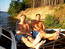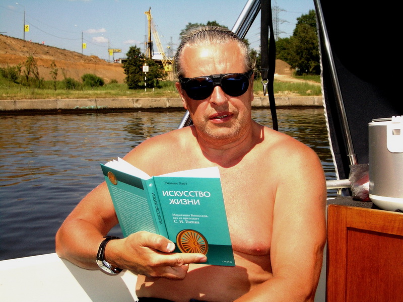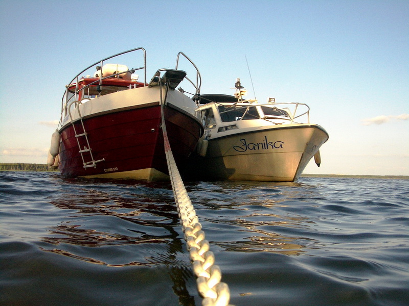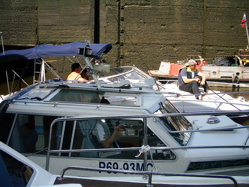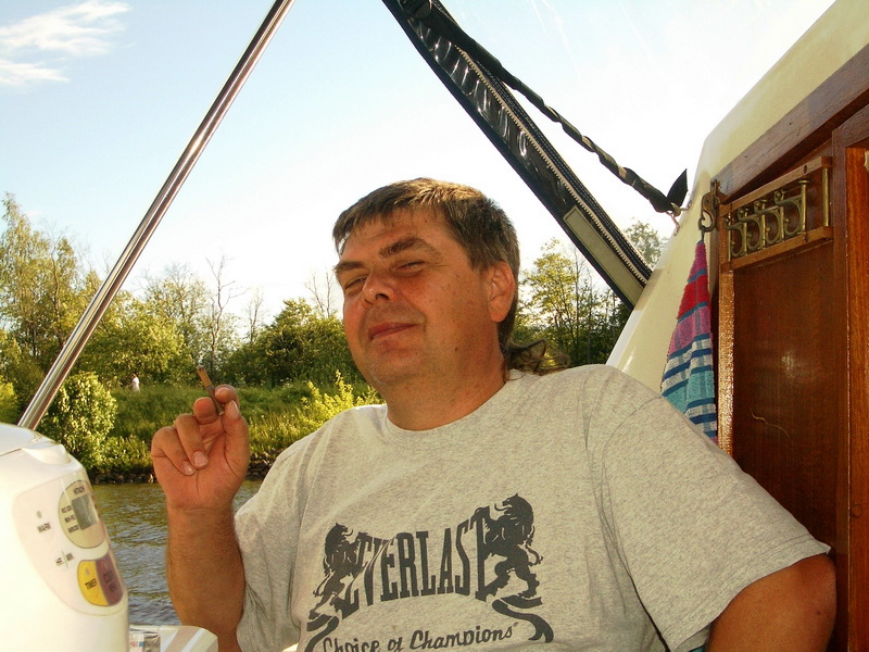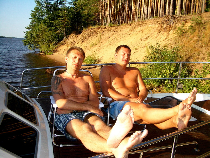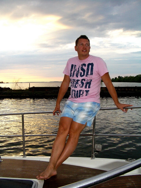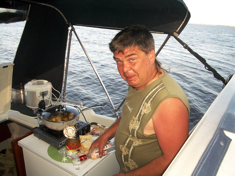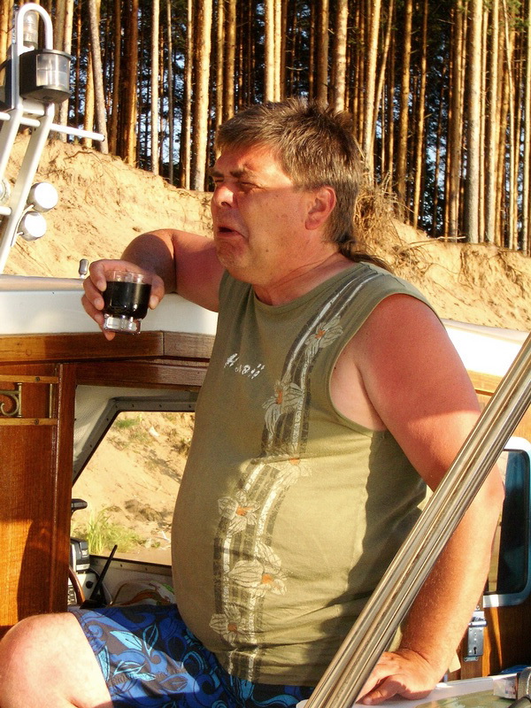 В этом году Андрюша, купив лодку, приобрел звание Адмирала и выдвинулись на двух. Кока перевели к нему на судно, где тот нещадно обкуривал всех "Капитаном Блэком". Дабы не напрягаться, пару зарисовок и всё))Стоим в Калязине..)) подходит яхточка, красиво на двух подрульках боком пирсу швартуется)) там капитан и два матроса в белых шортиках. ждут... подезжает мерс выгружает цветы, фрукты. потом вылезает известный персонаж по кличке "Длинный". Капитан что-то объясняет, он машет рукой "Мол все знаю)" Заводит оба двигателя, полный вперед и об пирс "Ба-ххх", потмо назад и заднецей "Ба-ххх" )) Все в воссторге)) Еле развернулся и убыл, нагнав волну (дурной тон рядом с мариной) в неизвестном направлении))Остальные остались утешать рыдающего капитана))